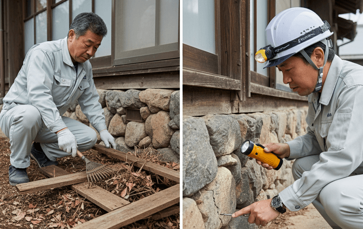 - 点検ではシロアリだけでなく床下環境を総合的に診断
