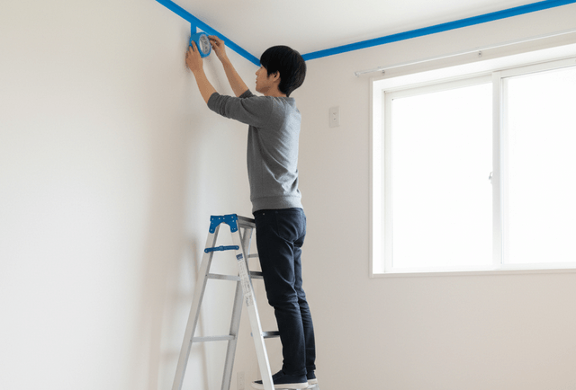 特に、壁と天井の境目や、壁と窓枠の境目などの直線部分は、マスキングテープを丁寧にまっすぐ貼ることが、美しい仕上がりの秘訣です。