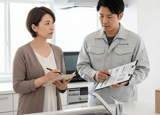 サイズ確認は、自分で行うことも可能ですが、少しでも不安がある場合は、リフォーム業者の現地調査の際にプロに正確に測定してもらうのが最も確実です。
