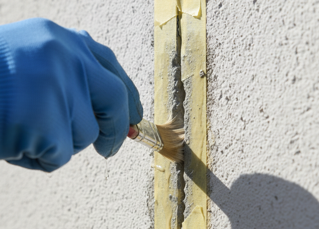 清掃したひび割れ部分に、ハケを使ってプライマーを塗布します。ひび割れの奥までしっかりと染み込ませるように、丁寧に塗り込んでください。塗り終わったら、製品に記載されている乾燥時間を守り、完全に乾くまで待ちます。プライマーが乾く前に次の工程に進むと、接着不良の原因になるため注意が必要です。 - コーキング材の充填