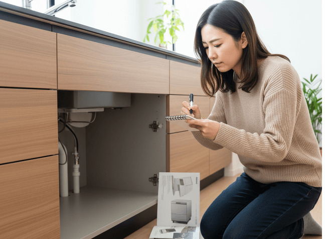 最も重要な確認事項は、食洗機を設置するためのスペースが確保できるかどうかです。