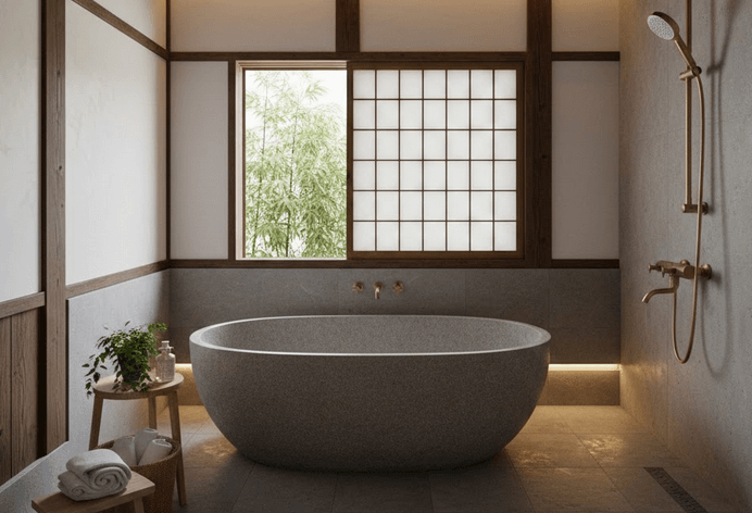- ヒノキや十和田石など素材にこだわれば癒やしの空間になる