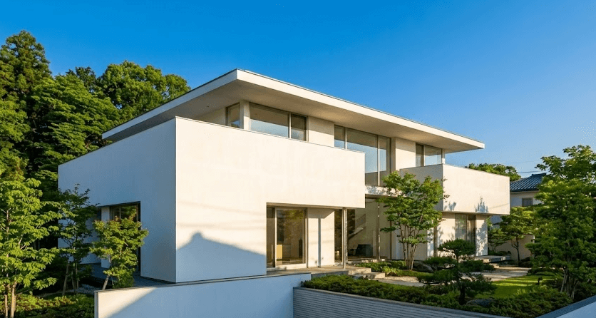 近年流行の「軒ゼロ住宅(軒の出がない箱型の家)」に漆喰を採用する場合、雨が壁面を直接流れる頻度が高くなるため、雨だれ汚れや劣化のリスクが格段に上がります。
