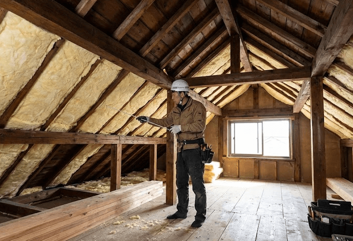 屋根裏への断熱材施工で快適に