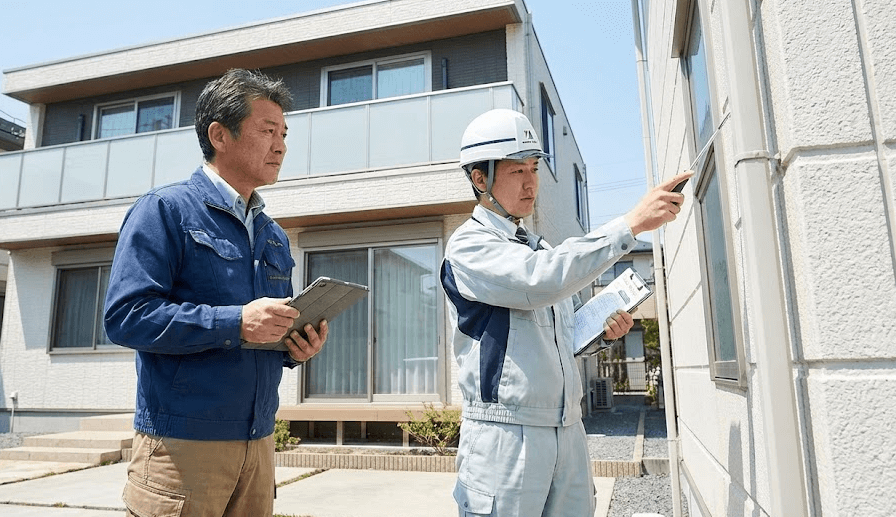 もし点検時に、塗装の剥がれやチョーキング(白い粉が手につく現象)、あるいはシーリング(目地)のひび割れが確認された場合、防水機能を維持するために外壁塗装工事を勧められることになります。
