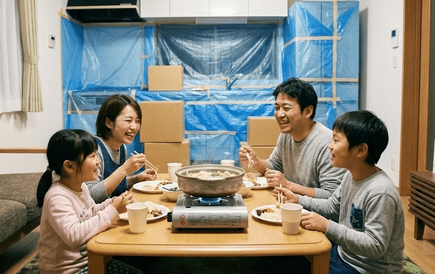 家族で「工事期間中のサバイバル生活」を楽しむくらいの気持ちで、準備を進めていきましょう。