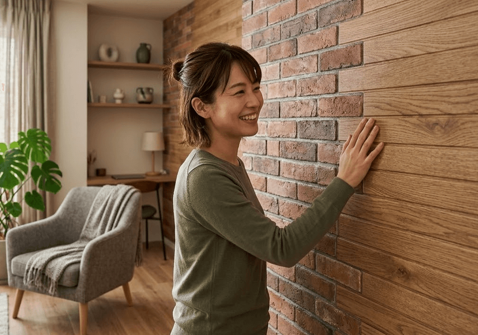 本物のレンガのように陰影が再現されており、部屋に奥行きと温かみをもたらしてくれます。