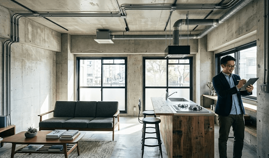 また、躯体現し(コンクリート打ちっぱなし)の天井や壁をあえて見せるデザインを取り入れることで、カフェのようなスタイリッシュな空間を演出することも可能です。