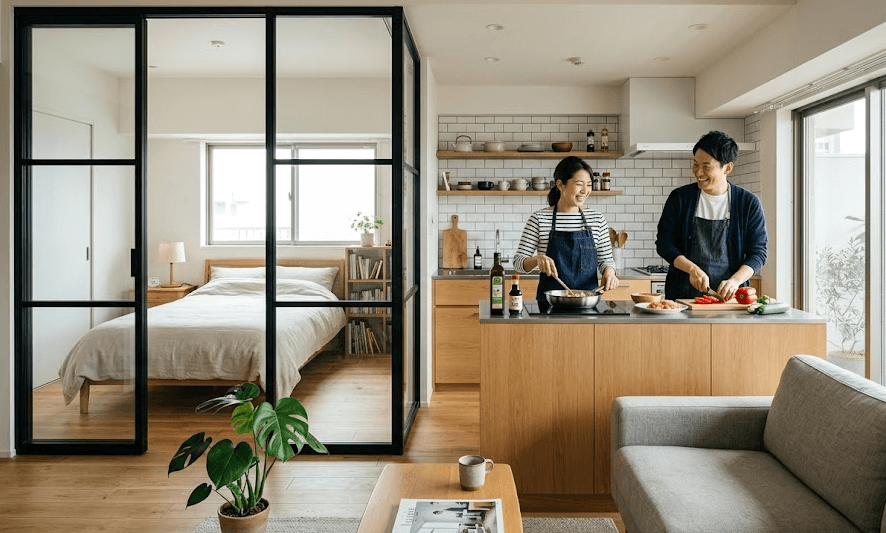 例えば、最初は広々とした1LDKとして使い、将来的に子供が生まれたり、本格的な個室が必要になったりした際に、簡単に空間を仕切れるようにしておくという考え方です。