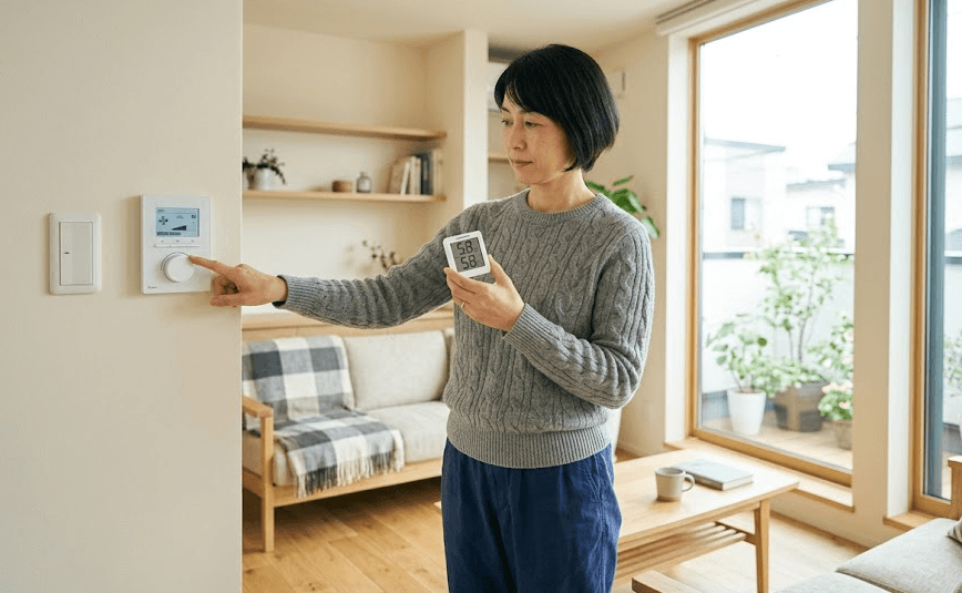 室内に温湿度計を複数設置し、相対湿度が常に40%から60%の範囲内に収まるようコントロールすることがアイ工務店のカビ問題を防ぐ鍵となります。